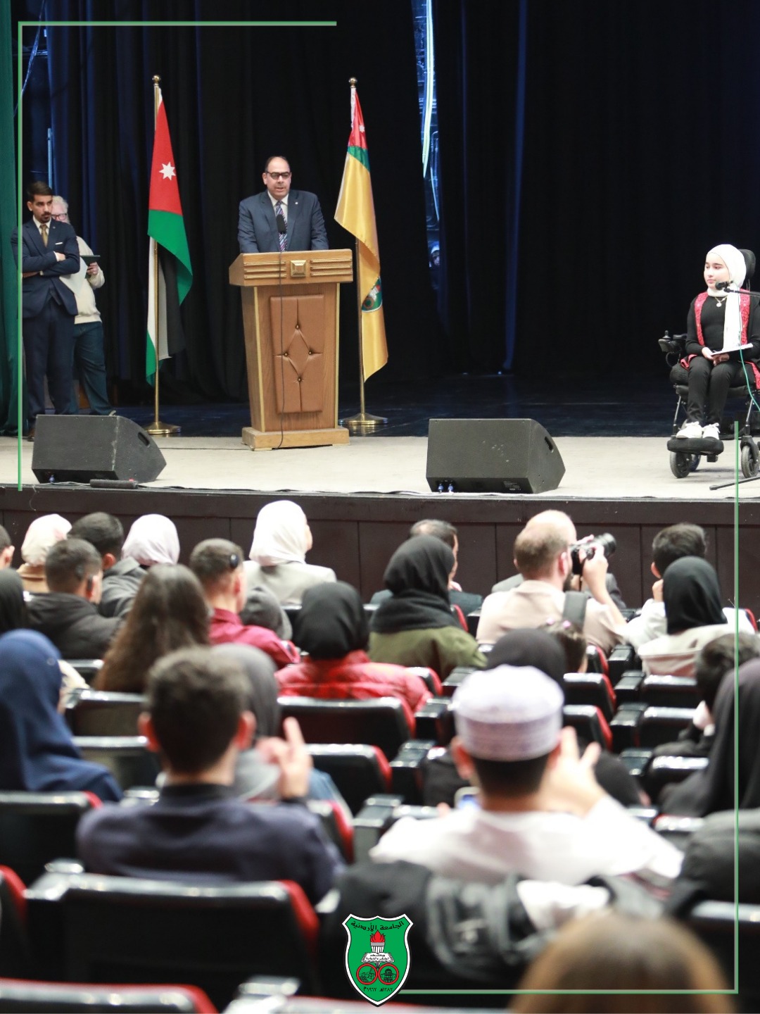 The University of Jordan (UJ), through the Deanship of Student Affairs, celebrated the International Day of Persons with Disabilities by hosting the “We Can” event under the patronage of Deputy Dean for Administrative and Financial Affairs Dr. Abdel Salam Al-Awamra. The celebration was organized in cooperation with the Student Counseling Department, the Prince Ali Bin Al-Hussein Club for the Deaf, and the First Jordanian Sign Language Interpreters Association, with support from the Ministry of Youth.